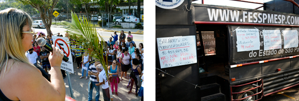 Caminhão de som da CSPM foi palco dos discursos dos dirigentes presentes