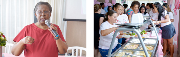 ALMOÇO - Ao fim das ministrações, foi servido um delicioso almoço com o cardápio repleto de porções preparadas especialmente às mulheres. Teve lagarto, estrogonofe, batata palha, muita comida e bebidas à vontade para as Servidoras. Encerrando a refeição, houve um primeiro sorteio de diversos brindes.